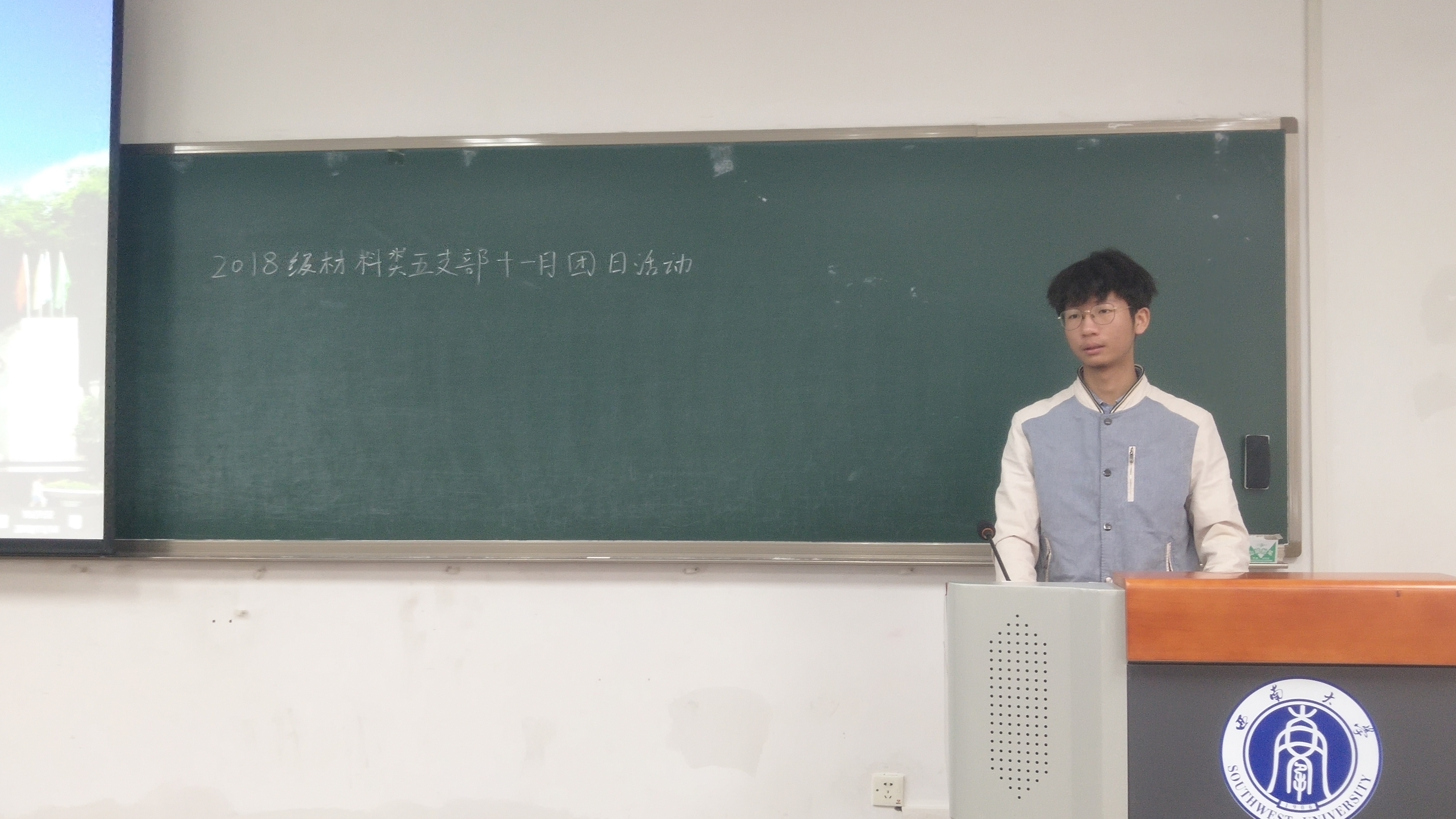 团支书代表肖又木介绍了此次团日活动的背景,呼吁大家要坚持读原著、学原文、悟原理。提高个人政治理论修养,然后为同学们播放了一段习近平总书记有关中国梦的讲话视频。