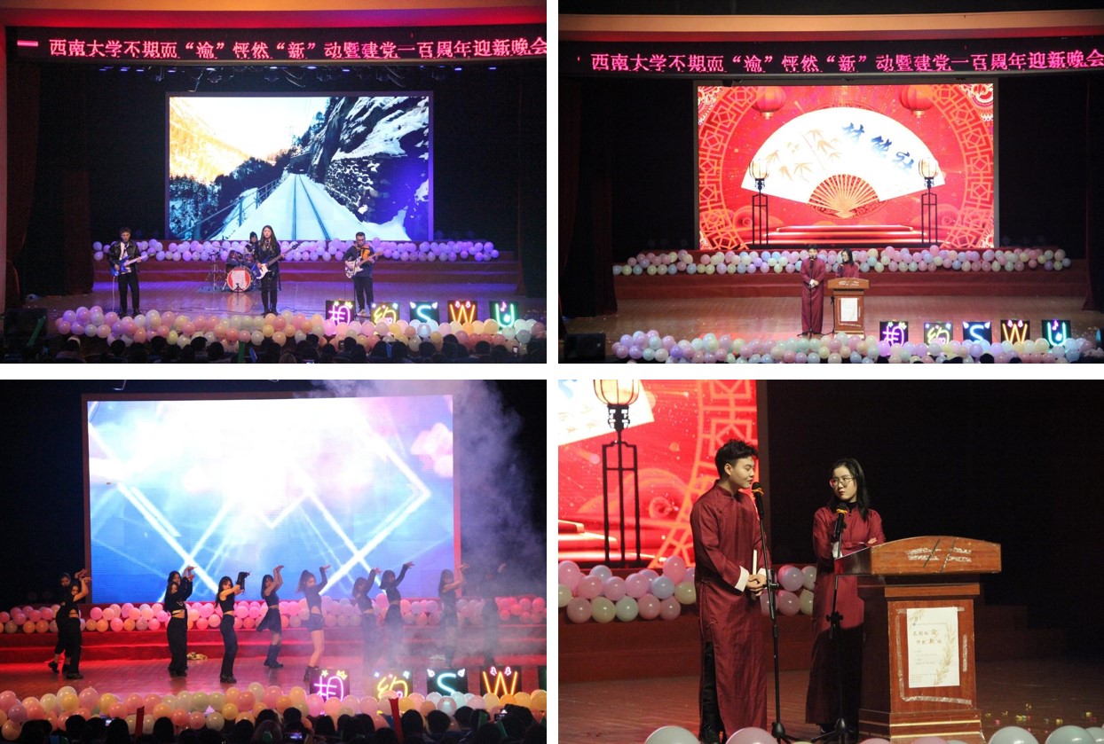 为迎接我院2021级研究生新生,庆祝建党一百周年,2021年12月23日晚,由304.cam永利集团、计算机与信息科学学院·软件学院、教师教育学院、食品科学学院以研究生会主要参与筹办的四院联合迎新晚会于光大礼堂圆满落幕。晚会以“不期而渝,怦然新动”为主题,新,既指迎新生,更指新时代,既表现了青年学生的个性活力,又彰显了莘莘学子的精神面貌!